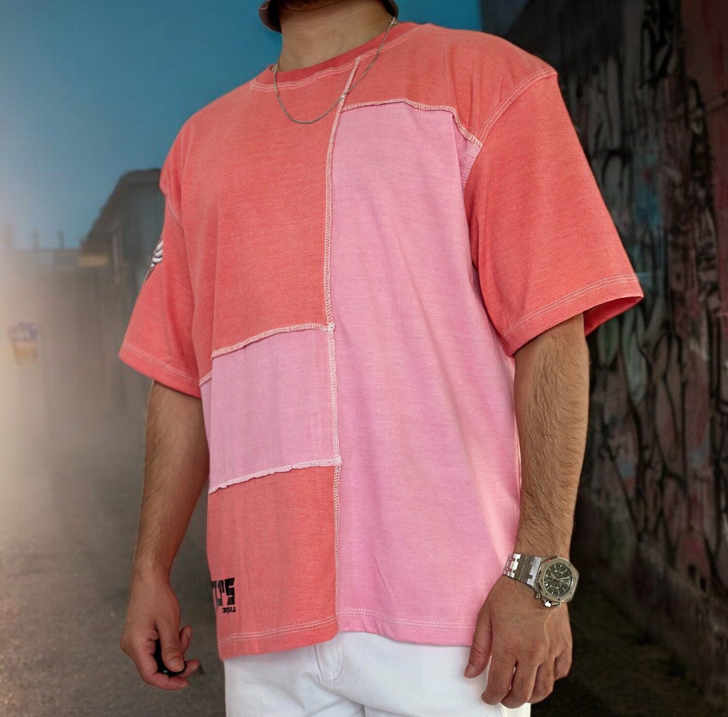 Color-Block Design: Striking pink and coral panels with exposed seam details, creating a modern and unique look.